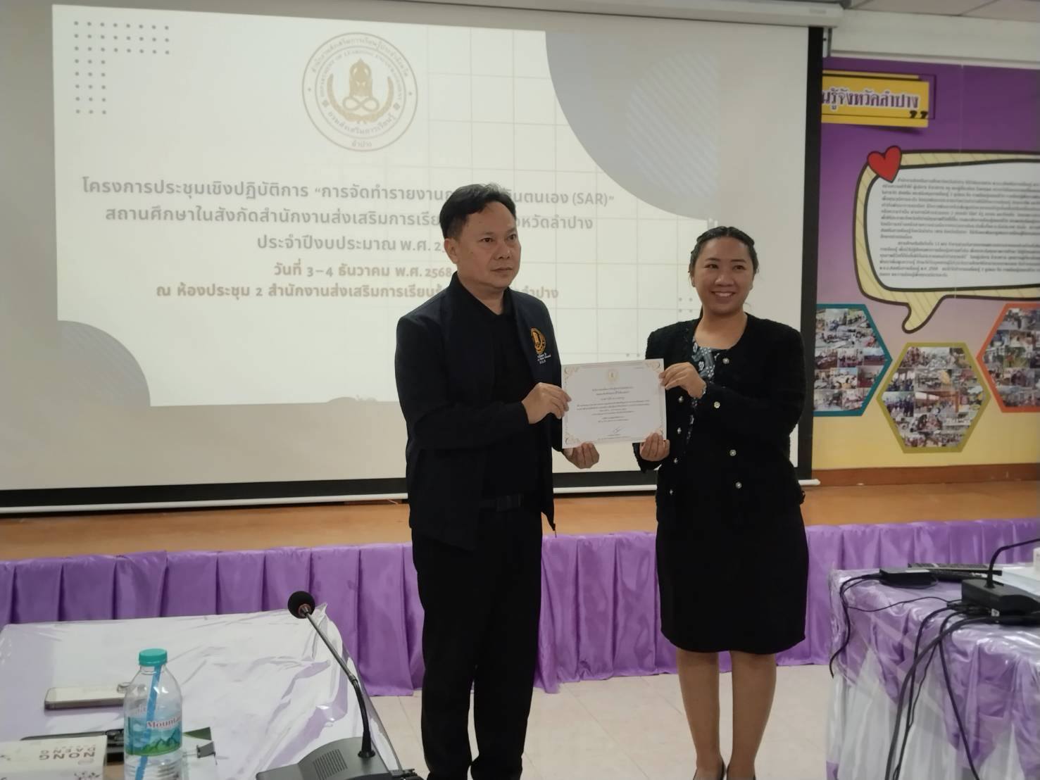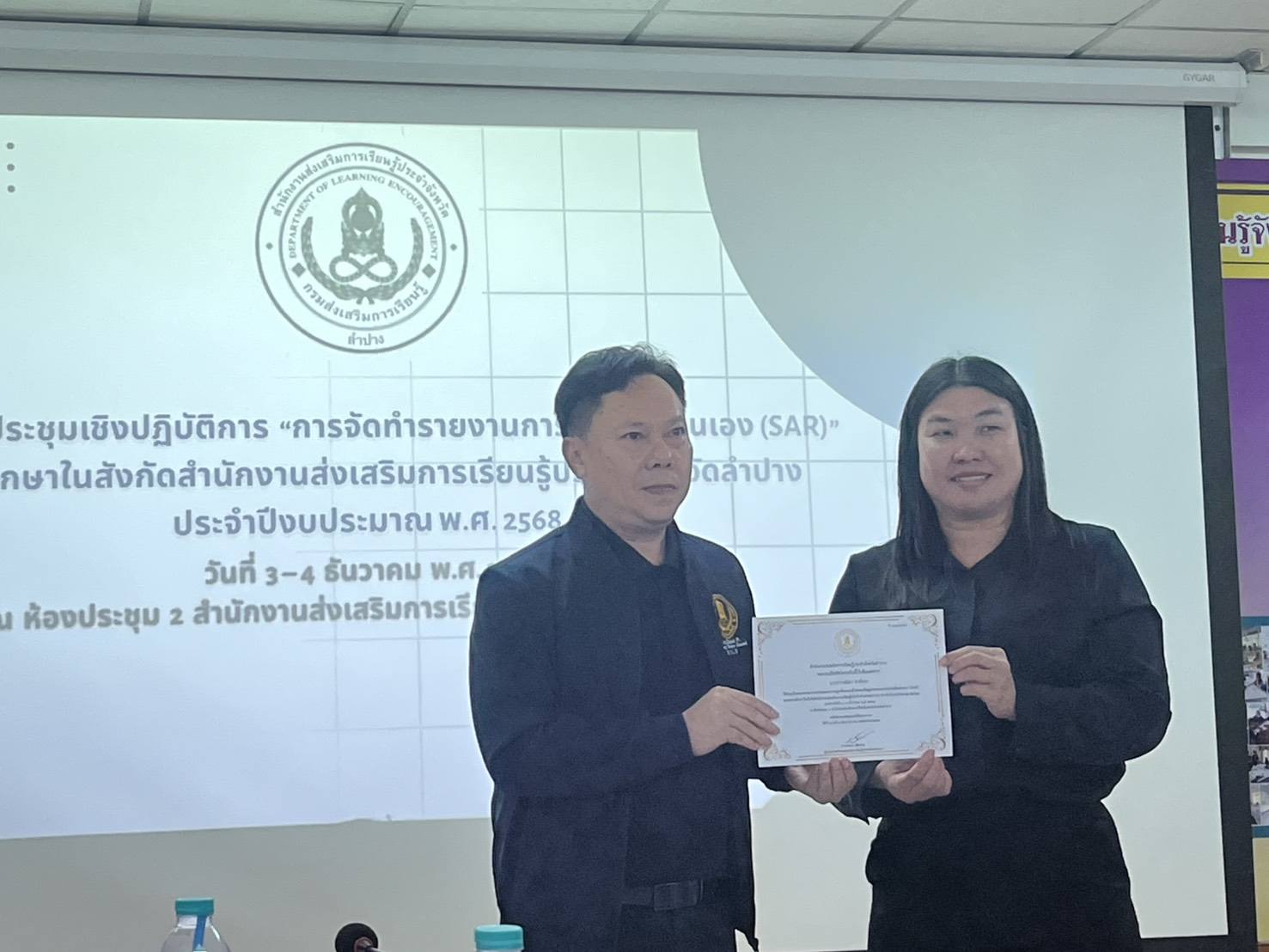 วันที่ 3 - 4 ธันวาคม 2568 สกร.ระดับอำเภอเกาะคา เข้าร่วมการประชุมเชิงปฏิบัติการ "การจัดทำรายงานการประเมินตนเอง (SAR)" สถานศึกษาในสังกัดสำนักงานส่งเสริมการเรียนรู้ประจำจังหวัดลำปาง ประจำปีงบประมาณ พ.ศ. 2568