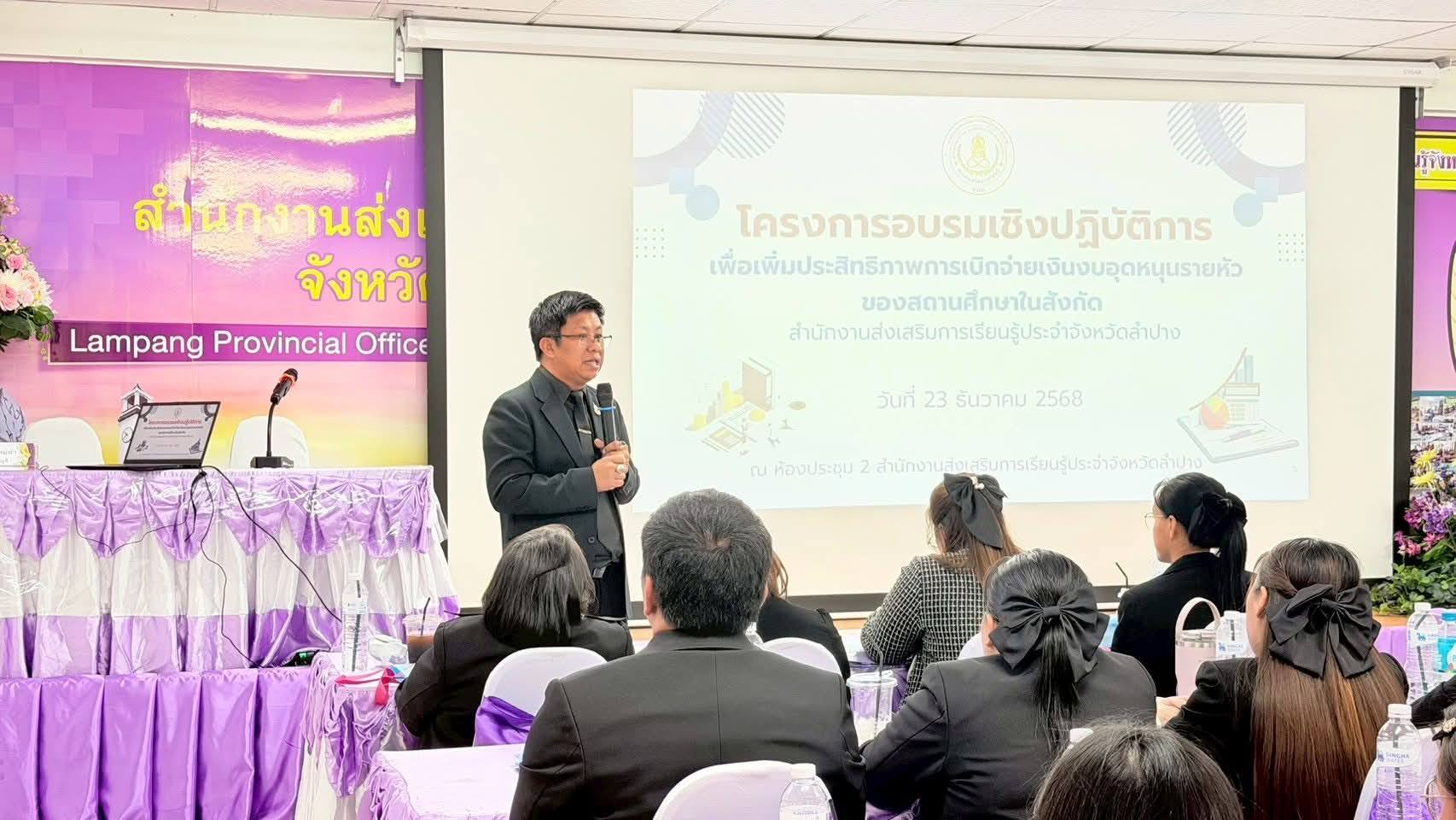 วันที่ 23 ธันวาคม 2568 ศูนย์ส่งเสริมการเรียนรู้ระดับอำเภอเกาะคา ข้าร่วมโครงการอบรมเชิงปฏิบัติการ เพื่อเพิ่มประสิทธิภาพการเบิกจ่ายเงินงบอุดหนุนของสถานศึกษาในสังกัด สำนักงานส่งเสริมการเรียนรู้ประจำจังหวัดลำปาง