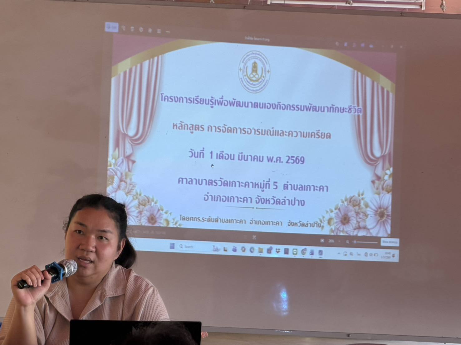 วันอาทิตย์ ที่ 1 มีนาคม 2569 ศกร.ระดับตำบลเกาะคา จัดโครงการเรียนรู้เชุมพื่อพัฒนาตนเอง หลักสูตร การจัดการอารมณ์และความเครียด จำนวน 3 ชั่วโมง