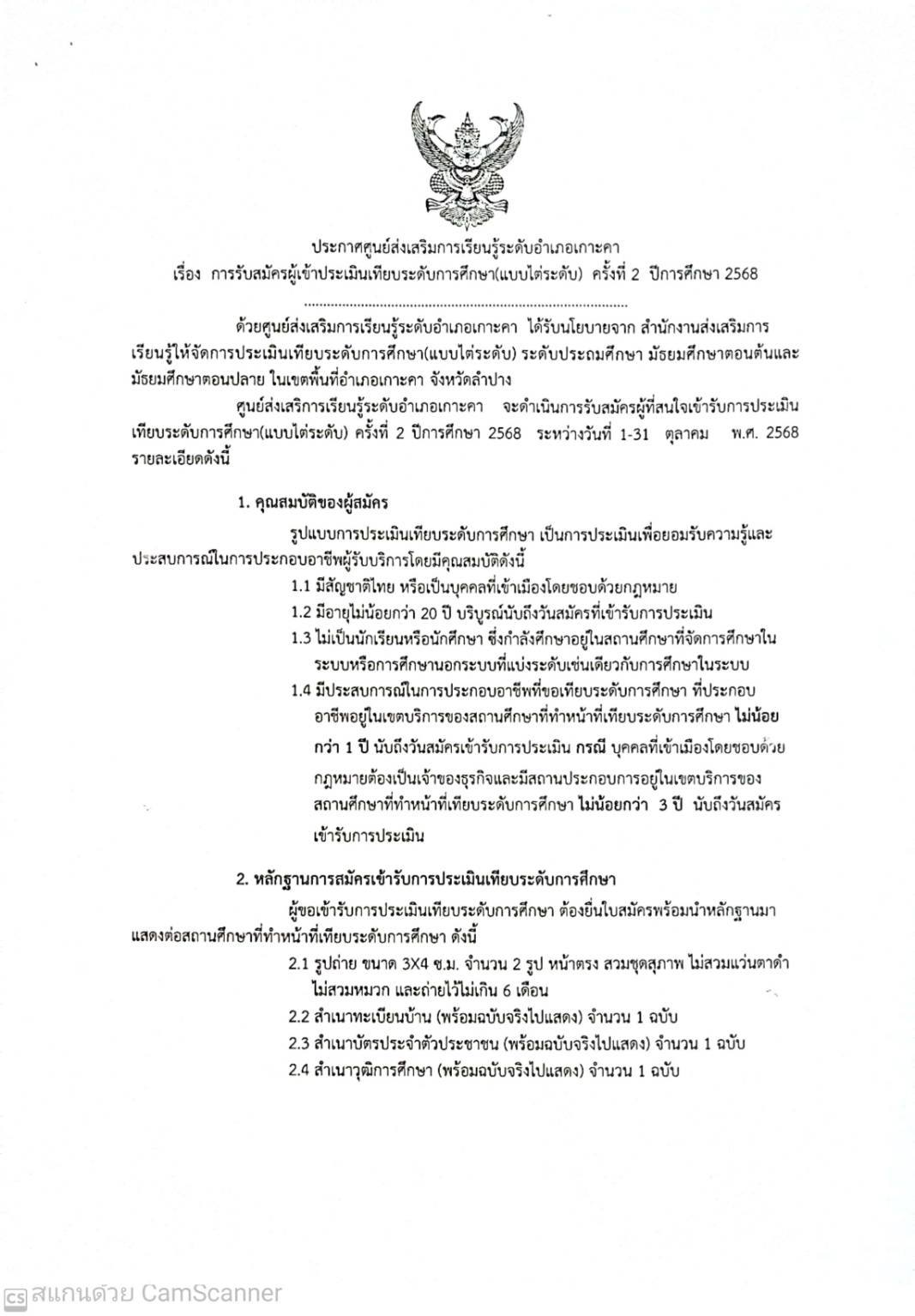 ศูนย์ส่งเสริการเรียนรู้ระดับอำเภอเกาะคา รับสมัครผู้เข้าประเมินเทียบระดับการศึกษา (แบบไต่ระดับ) ครั้งที่ 2 ปีการศึกษา 2568 ตั้งแต่วันที่ 1 - 31 ตุลาคม 2568
