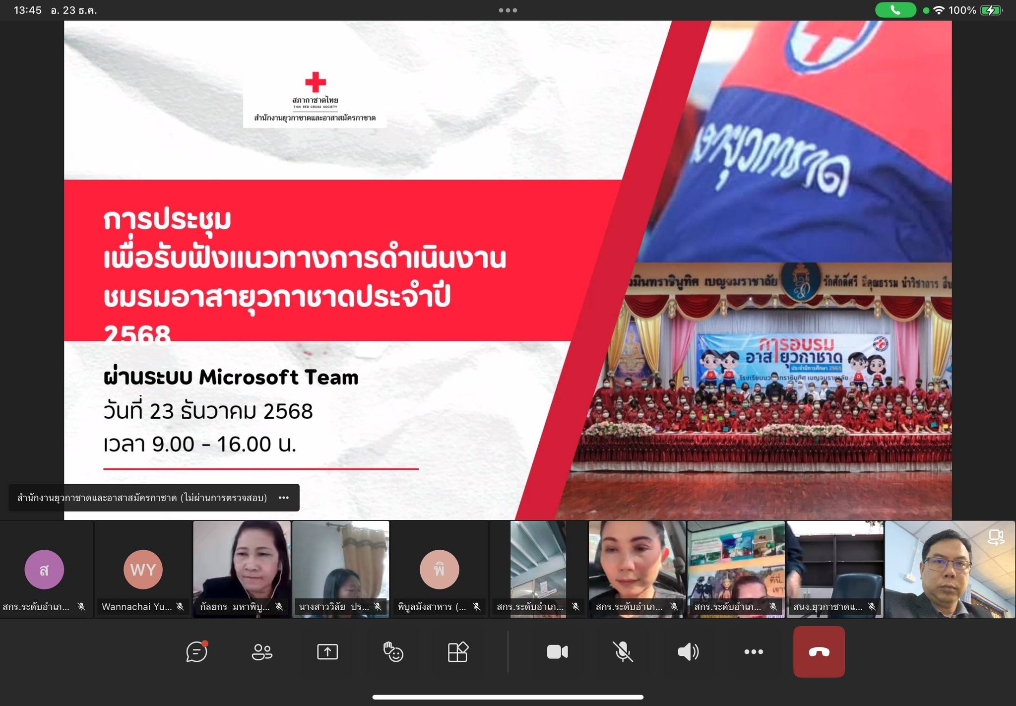 วันที่ 23 ธันวาคม 2568 ศูนย์ส่งเสริมการเรียนรู้ระดับอำเภอเกาะคา ข้าร่วมประชุมเพื่อรายงานผลการดำเนินงานของชมรมอาสายุวกาชาด ประจำปี 2568 และรับฟังแนวทางการดำเนินงานชมรมอาสายุวกาชาด ประจำปี 2569 ผ่านระบบ Microsoft Team