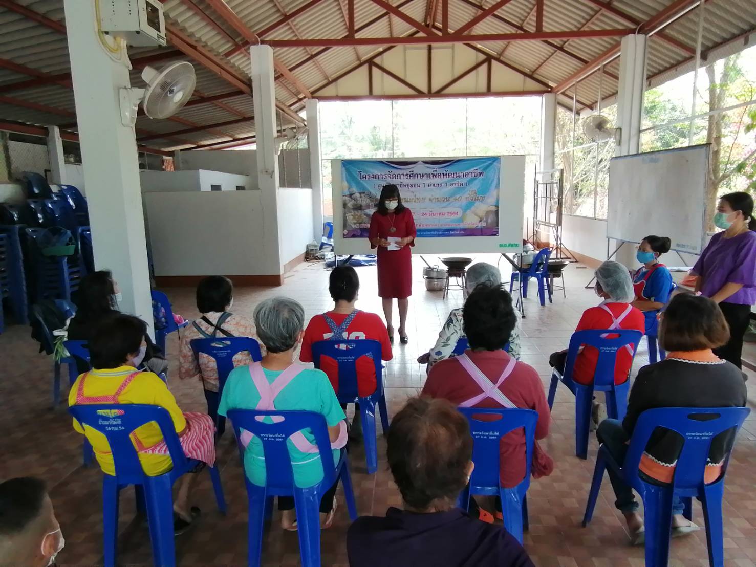 วันที่ 18 มีนาคม พ.ศ. 2564 นางจิดาภา สนนิคม ผู้อำนวยการ กศน.อำเภอเกาะคา ได้เป็นประธานในพิธีเปิดโครงการจัดการศึกษาเพื่อพัฒนาอาชีพ (ศูนย์ฝึกอาชีพชุมชน 1 อำเภอ 1 อาชีพ) หลักสูตรธุรกิจขนมไทย จำนวน 40 ชั่วโมง ดำเนินการจัดระหว่างวันที่ 17-24 มีนาคม พ.ศ. 2564 ณ ศาลาเอนกประสงค์บ้านนากิ๋ม หมู่ที่ 7 ตำบลนาแส่ง อำเภอเกาะคา จังหวัดลำปาง โดยมีนางจารุณี เปล่งแสงทอง เป็นวิทยากร