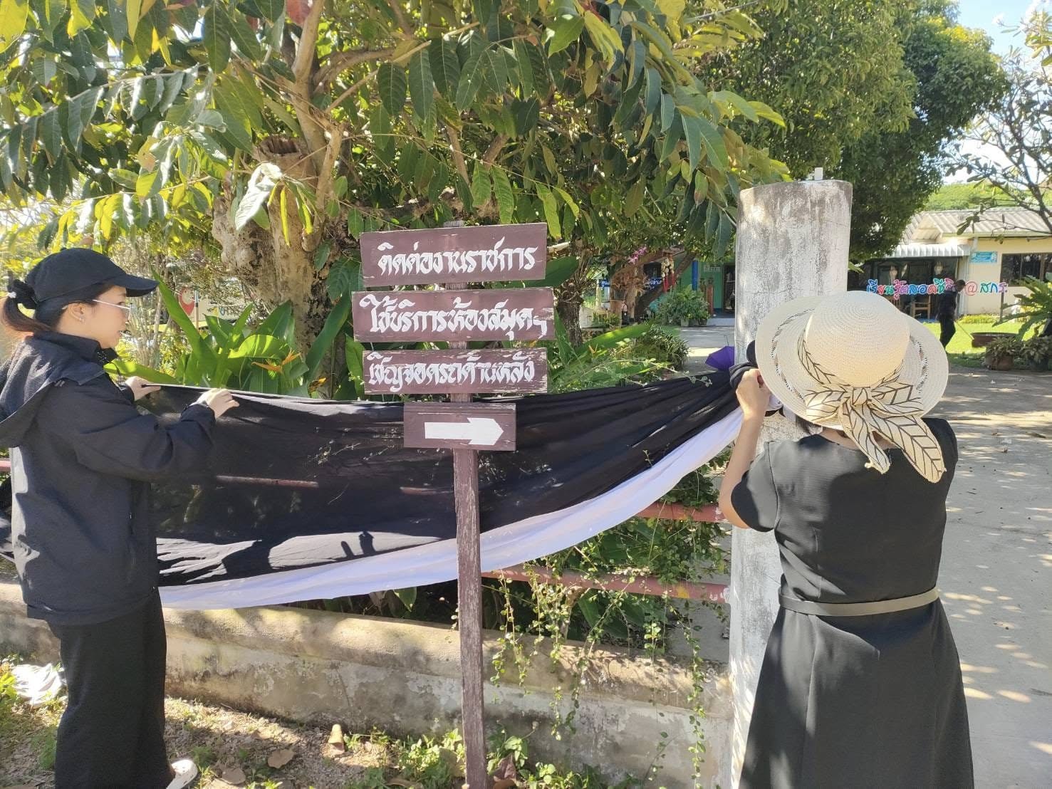 เรื่อง วันจันทร์ที่ 27 ตุลาคม 2568 นย์ส่งเสริมการเรียนรู้ระดับอำเภอเกาะคา จัดตกแต่งสถานที่ โดยร่วมประดับผ้าสีดำระบายสีขาว เพื่อถวายความอาลัยและแสดงความจงรักภักดี ต่อการเสด็จสวรรคตของสมเด็จพระนางเจ้าสิริกิติ์ พระบรมราชินีนาถ พระบรมราชชนนีพันปีหลวง วันที่ 29/10/2568 |