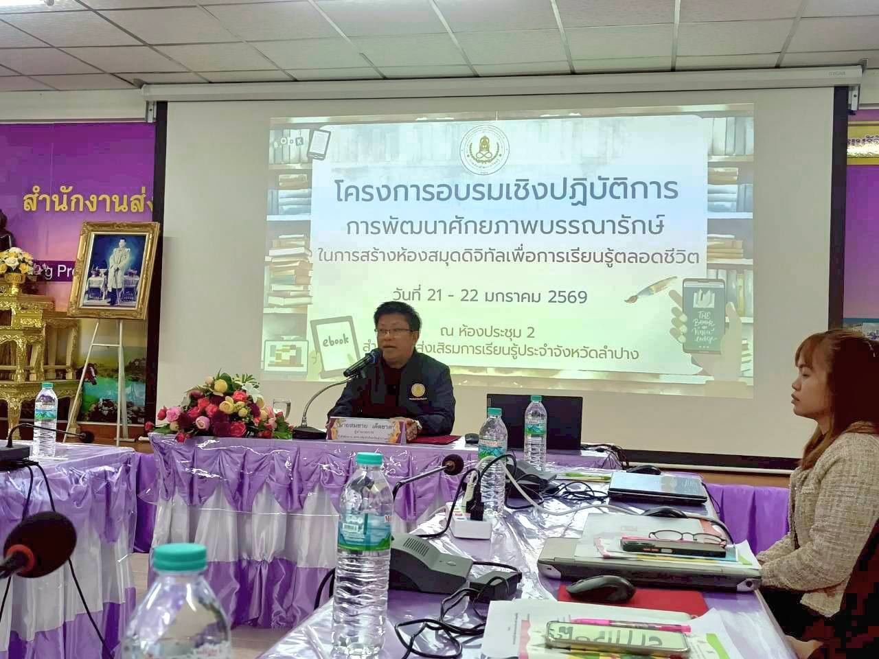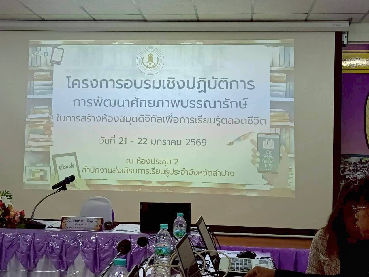 ️👥️ นางศรีวรรณ์ บุญยะเลขา บรรณารักษ์ชำนาญการพิเศษ เข้าร่วมอบรมเชิงปฏิบัติการพัฒนาศักยภาพบรรณารักษ์ในการสร้างห้องสมุดดิจิทัลเพื่อการเรียนรู้ตลอดชีวิต ระหว่างวันที่ 21-22 มกราคม 2569 โดยนายสมชาย เด็ดขาด ผู้อำนวยการสำนักงานส่งเสริมการเรียนรู้ประจำจังหวัดลำปาง เป็นประธานเปิดการอบรม ณ ห้องประชุม 2 สำนักงาน สกร.ประจำจังหวัดลำปาง อำเภอเมืองลำปาง จังหวัดลำปาง