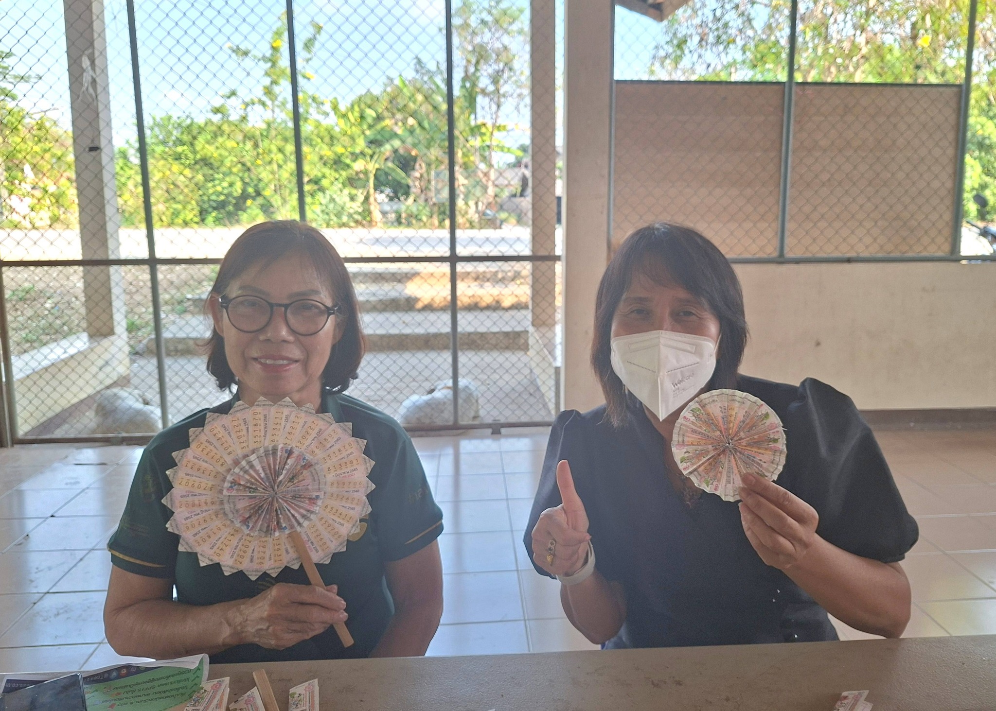 นางศรีวรรณ บุญยะเลขา บรรณารักษ์ชำนาญการพิเศษ และ นางสาวจันทร์ญา จิโน ครูศูนย์การเรียนรู้ จัดกิจกรรมการเรียนรู้ตลอดชีวิต การดูแลสุขภาพ "โรคลมแดดหรือฮิสโตร" และการทำพัดจากวัสดุเหลือใช้ เพื่อให้ความรู้การดูแลสุขภาพในช่วงฤดูร้อน ณ ห้องสมุดเคลื่อนที่สำหรับชาวตลาด ตำบลนาแส่งอำเภอเกาะคาจังหวัดลำปาง